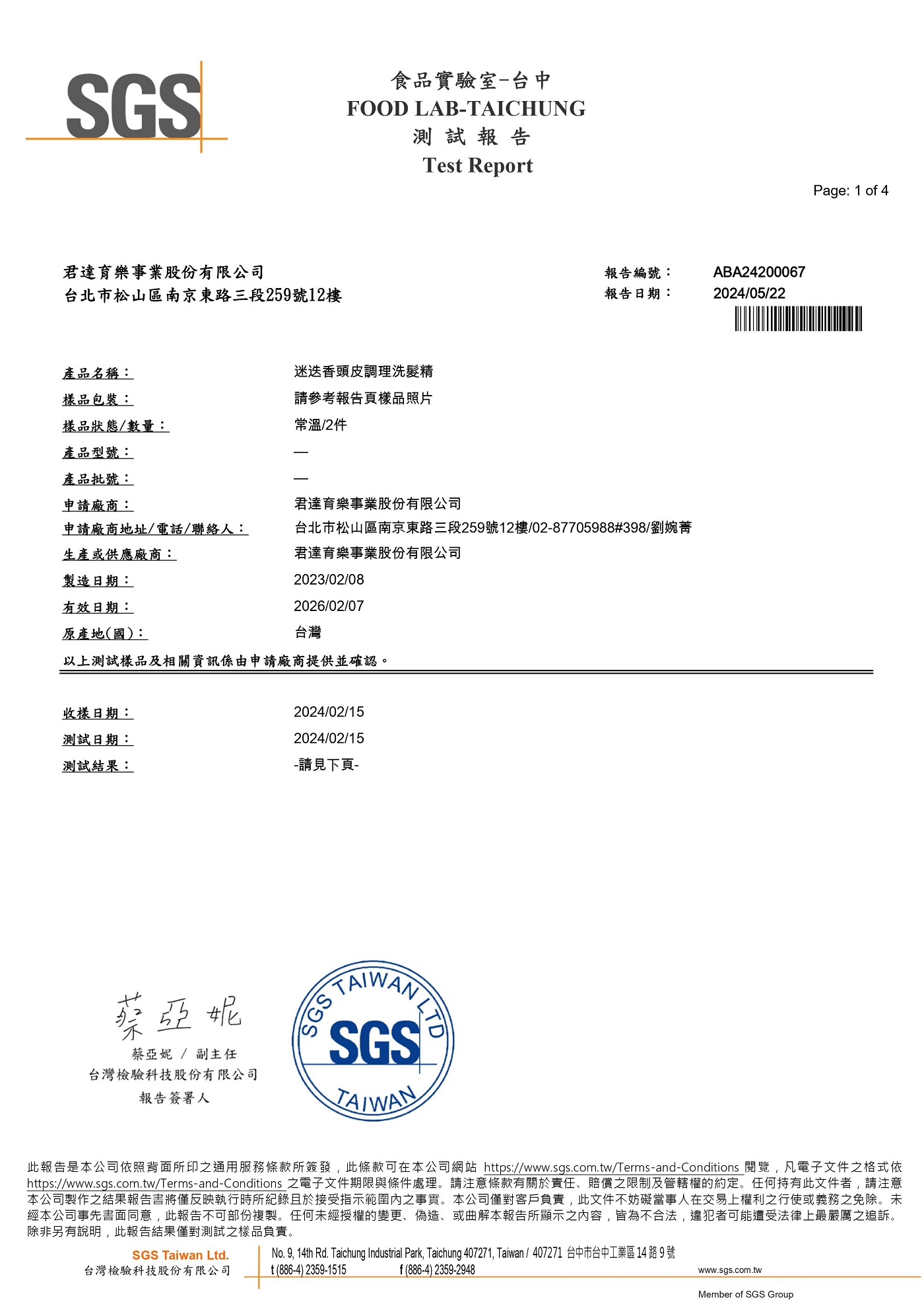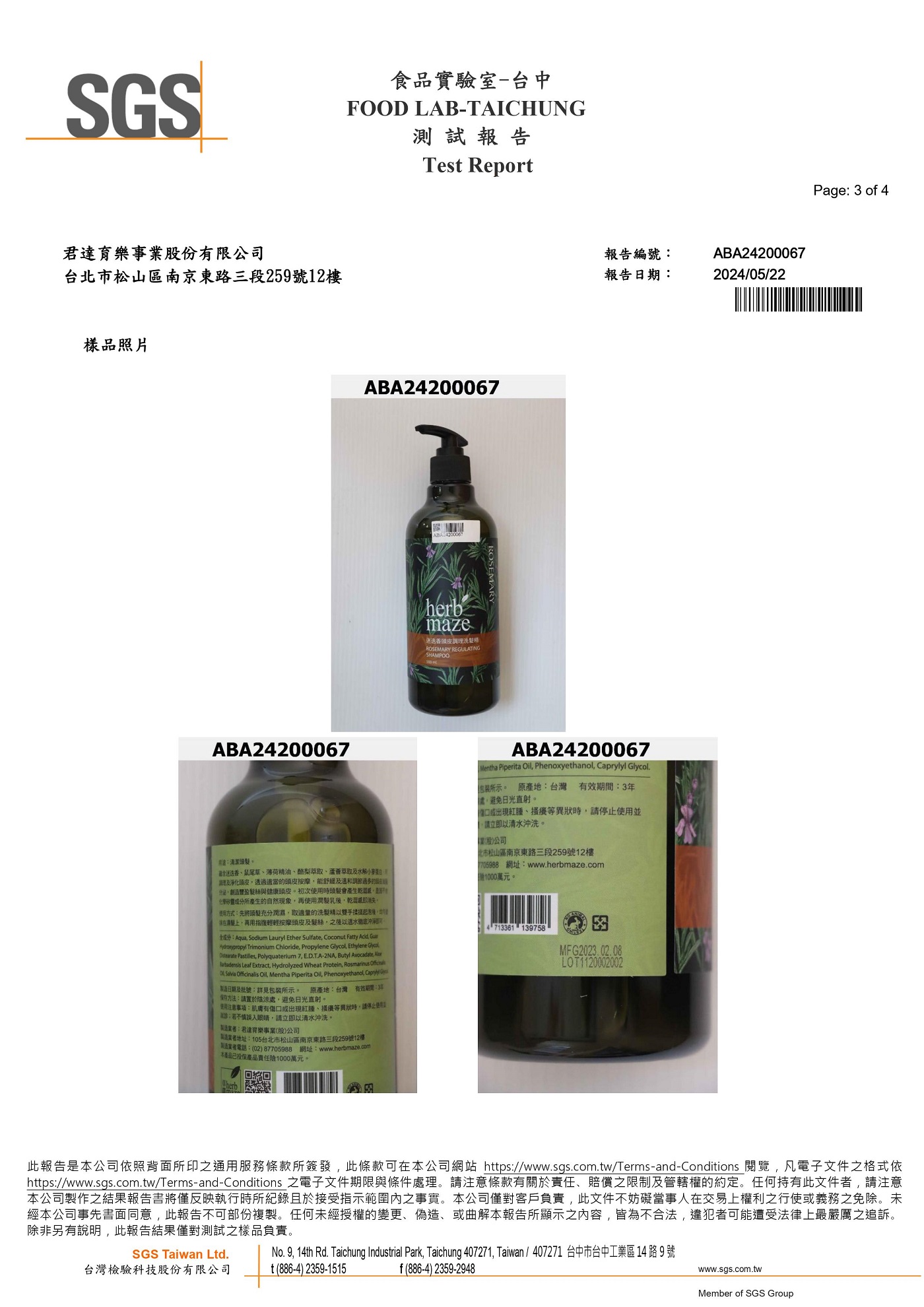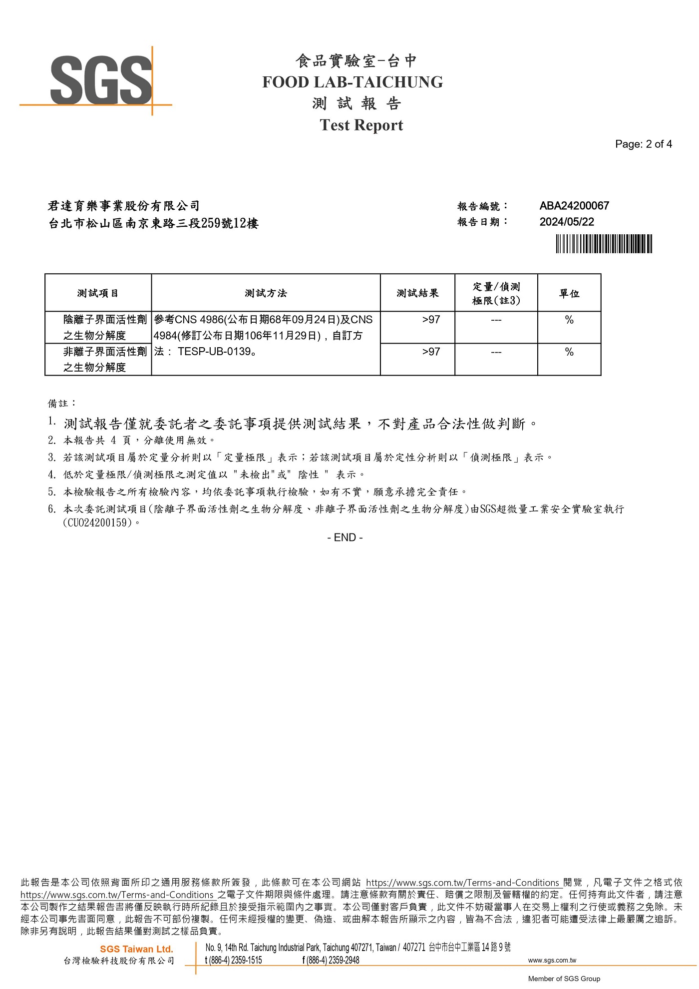 草繹 迷迭香頭皮調理洗髮精-生物分解度SGS檢測結果,大於97%